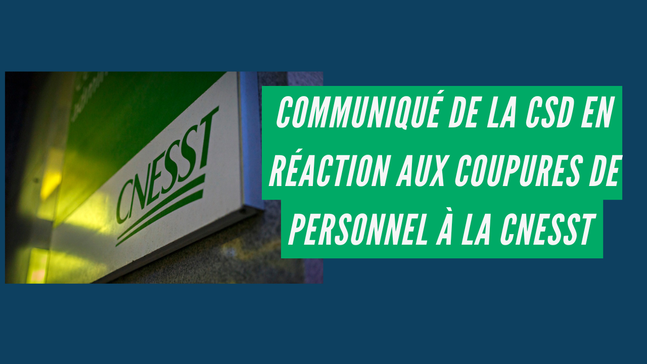 La Centrale des syndicats démocratiques (CSD) dénonce fortement et avec indignation les coupures de personnel de la Commission des normes, de l’équité, de la santé et de la sécurité du travail (CNESST) qui ont été récemment annoncées et commandées par le Conseil du trésor. 115 emplois seront supprimés d’ici l’an prochain. Ces coupures s’ajoutent par ailleurs aux 250 emplois coupés l’été dernier.
